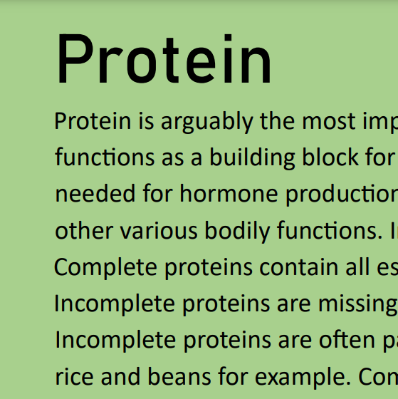 My nutrition guide is a general overview of the larger concepts of nutrition. Inside, you will find somewhat extensive macronutrient education, breakdowns, and recommendations. Within each food group, a detailed list of examples and why you should eat them is also included. There is a sample grocery list and two meal templates. Also included is information regarding hydration, foods to avoid and why, and feeding frequency.